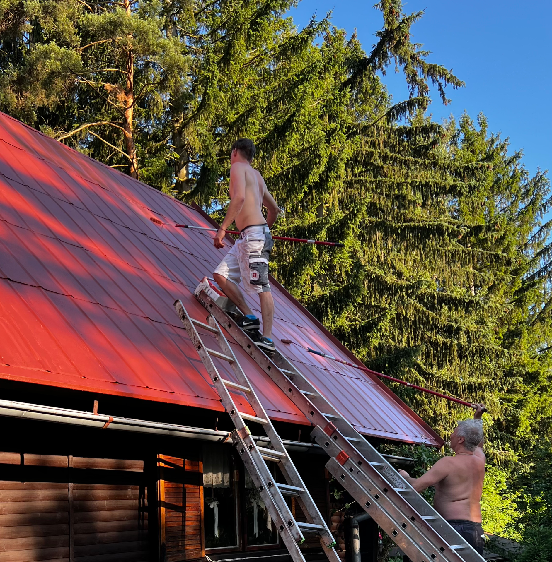 Před samotným nátěrem povrch důkladně vyčistíme, odstraníme nečistoty, mech a staré vrstvy, aby nový nátěr perfektně přilnul a vydržel co nejdéle. Používáme kvalitní ochranné a hydrofobní nátěry, které zajišťují dlouhodobou ochranu, stálost barev a čistý, upravený vzhled střechy i fasády.